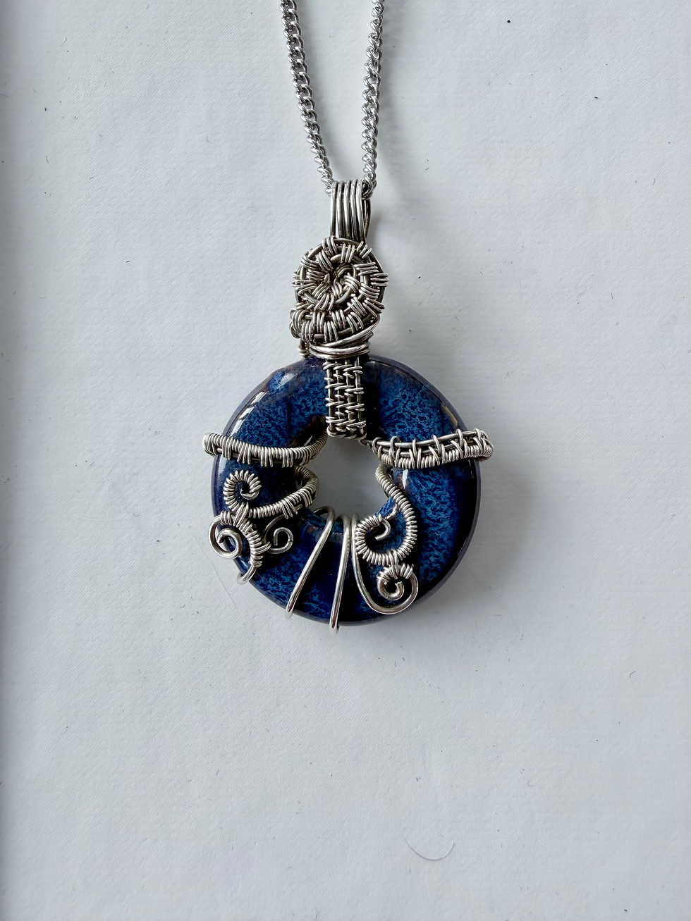 Silver and clay donut pendant